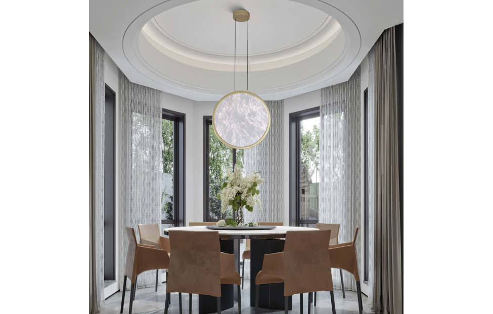 При создании коллекции светильников Imma вдохновлялись пейзажной живописью, тушью. Светильники задуманы как световые скульптуры с чувственными, завораживающими рисунками, которые, пропуская свет, создают неповторимые цветовые переходы. Металлический каркас в цвете матовое золото, плафон из акрила с эффектом дыма, лента LED расположена по внутреннему периметру плафона, регулируемая высота.