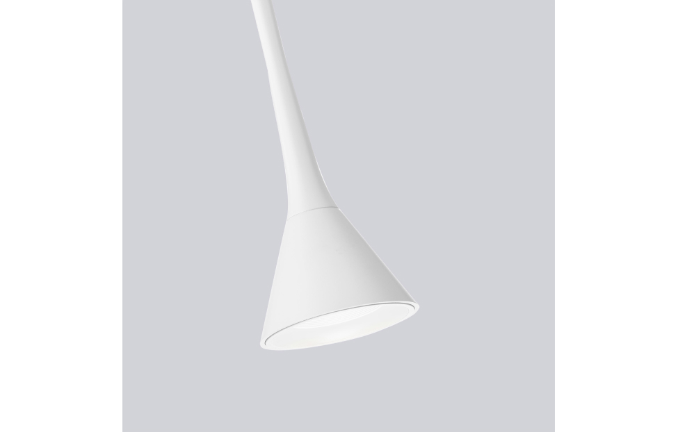 Коллекция Klokken представлена подвесами в форме удлиненной трубочки с конусом на конце, такой плафон позволяет потоку света от встроенного LED-модуля рассеиваться под широким углом обеспечивая качественное освещение рабочей поверхности. Подвесы изготовлены из анодированного алюминия, что делает их поверхность более устойчивой к коррозии. Металлический каркас черного цвета, плафон из алюминия в форме тонкого удлиненного цилиндра с конусом на конце в белом цвете, в нижней части подвеса расположен светодиодный источник света, регулируемая высота.