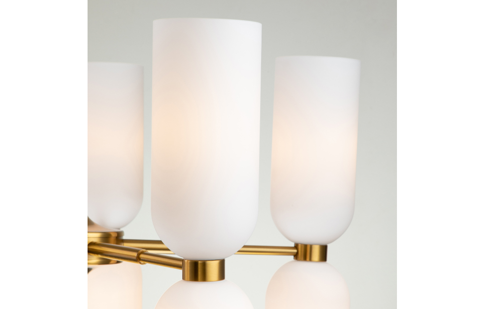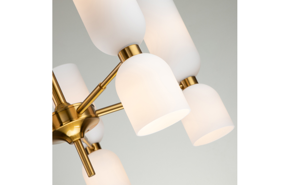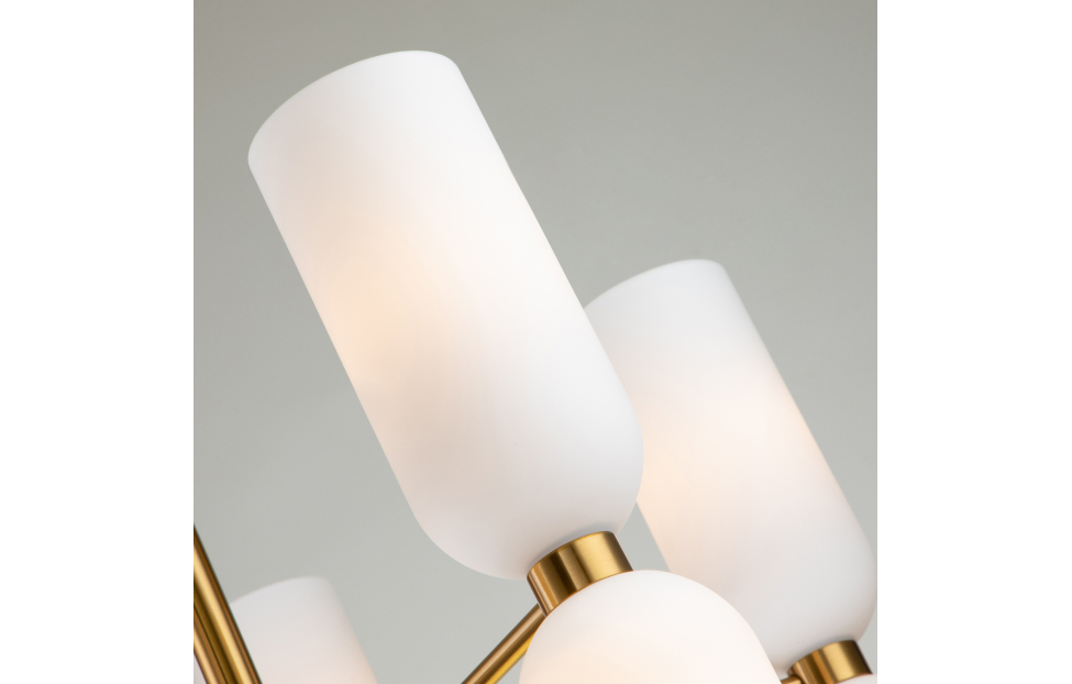 Подвесная люстра коллекции Amusing с белыми выдувными плафонами и латунным каркасом. Двойные плафоны оригинальной формы и разной высоты хорошо рассеивают свет ламп, направленных вверх и вниз. Латунная коллекция станет красивым дополнением к классическому интерьеру. Высоту люстр можно менять благодаря составному центральному штоку.