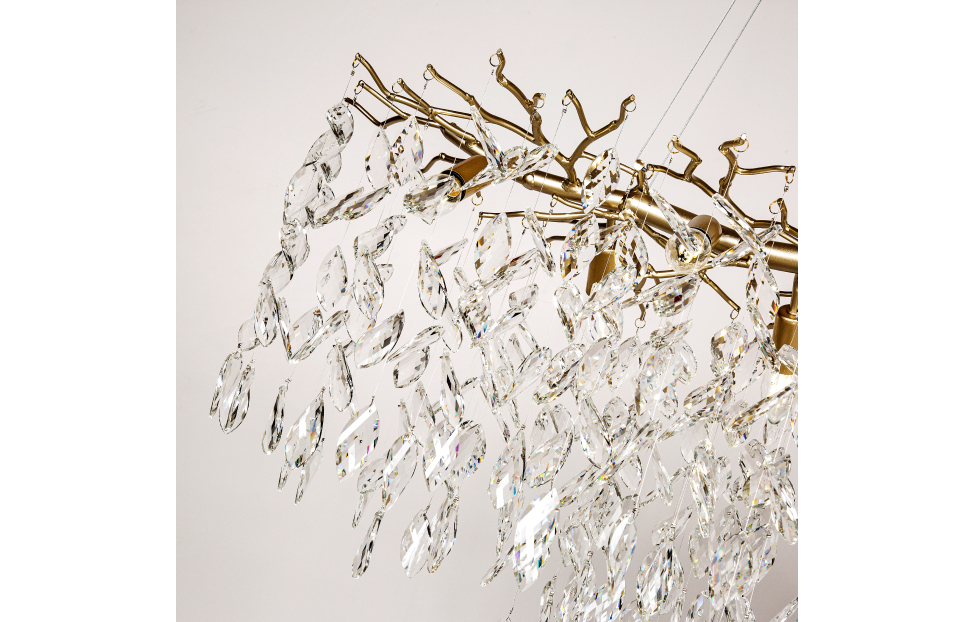 Коллекция Brillo выполнена в стиле современной флористики. Светильники декорированы хрустальными подвесками в виде листьев дерева. Каркас выполнен в цвете матового золота. Эти светильники созданы, чтобы стать ярким акцентом интерьера.