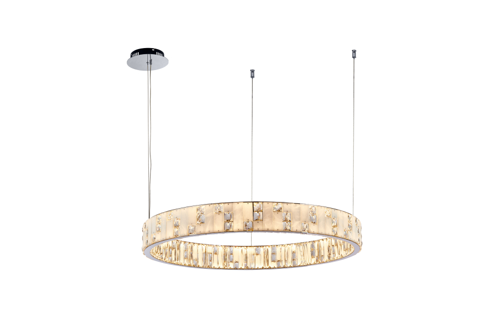 Конструкция люстр в виде колец на тросовых подвесах добавит в интерьер особый шарм и легкость. Хромированная отделка придает этим светильникам современный вид и отражает свет, создавая игру бликов и отражений. Декор в виде тонких пластин из белого мрамора придает изысканный и шикарный вид, особый блеск и нежность. Прозрачные вставки из хрусталя добавляют дополнительную яркость и контрастность. Люстры из этой коллекции создают изумительное освещение и станут прекрасным украшением вашего интерьера. Они идеально впишутся в современный дизайн гостиной, столовой или спальни.