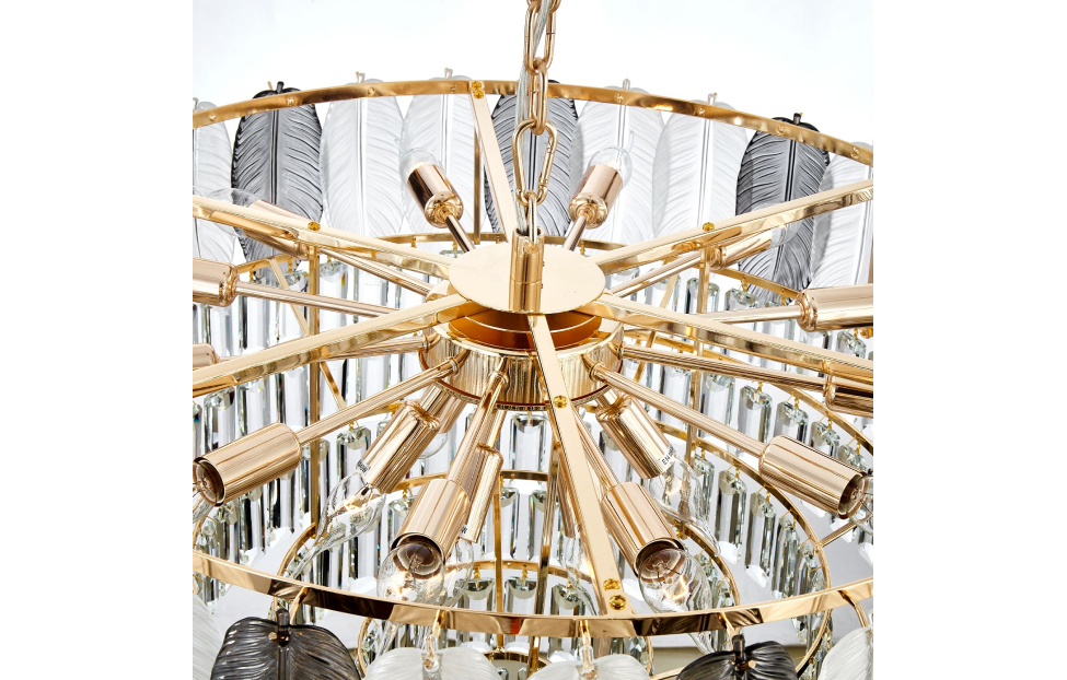 Отображение природных мотивов в предметах интерьера всегда выглядит утонченно и изящно. Это можно сказать и о нашей коллекции Dolor. Каркас коллекции в цвете золота оформлен декоративными лепестками из белого и серого стекла, которые обрамляют хрустальный водопад кристаллов высшего качества прямоугольной формы.