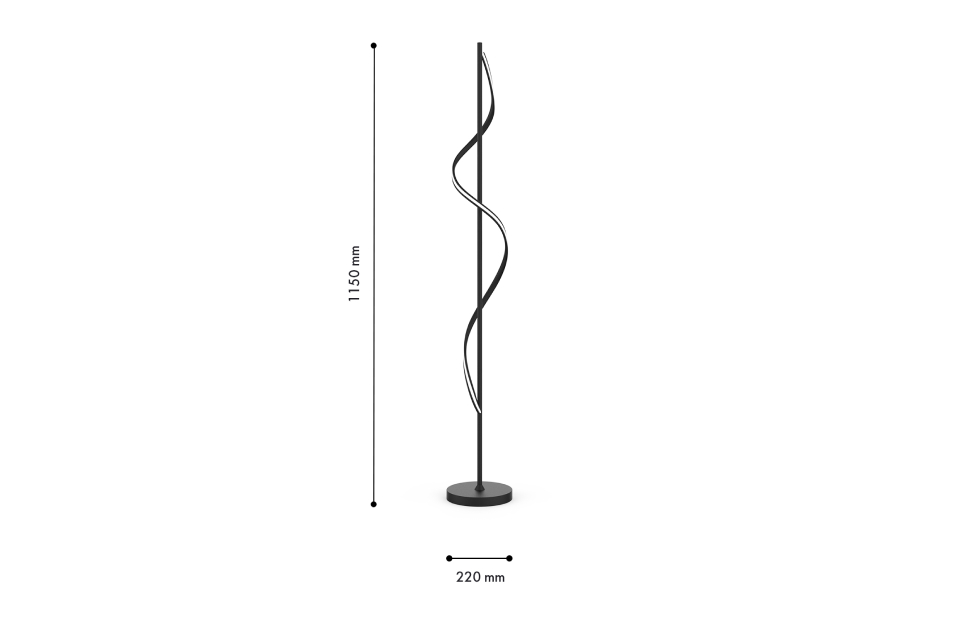 Напольный светильник Locket представлен в чёрном цвете. Вытянутый жесткий профиль декорирован гибким профилем, который оснащен LED-лентой и мягкой волной оборачивается вокруг жесткого профиля. Выключатель на проводе.