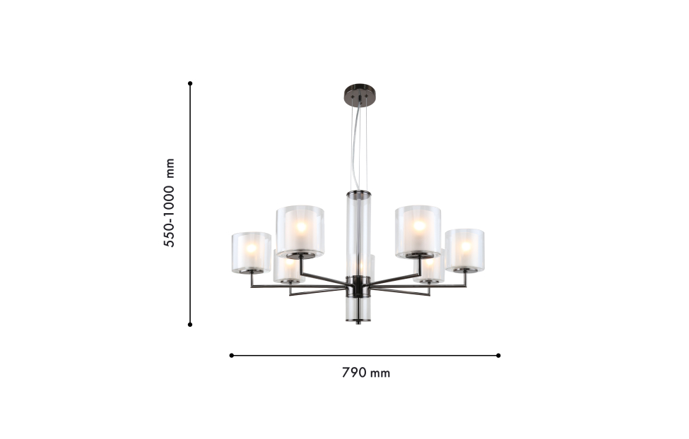 Оригинальные плафоны из двойного стекла – изюминка коллекции светильников Proper. Внутренние плафоны выполнены из матового белого стекла, внешние – из прозрачного стекла. Вторым оригинальным элементом коллекции является центральный шток с декоративным стеклянным цилиндром. Крепление на тросах позволяет регулировать высоту.