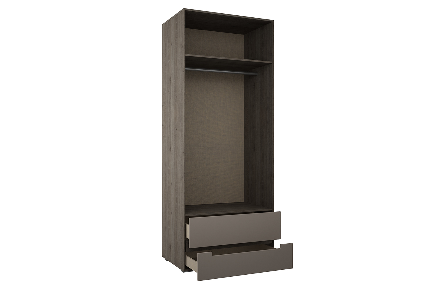 - Шкаф укомплектован полкой, штангой для одежды и двумя выдвижными ящиками в нижнем отделении;