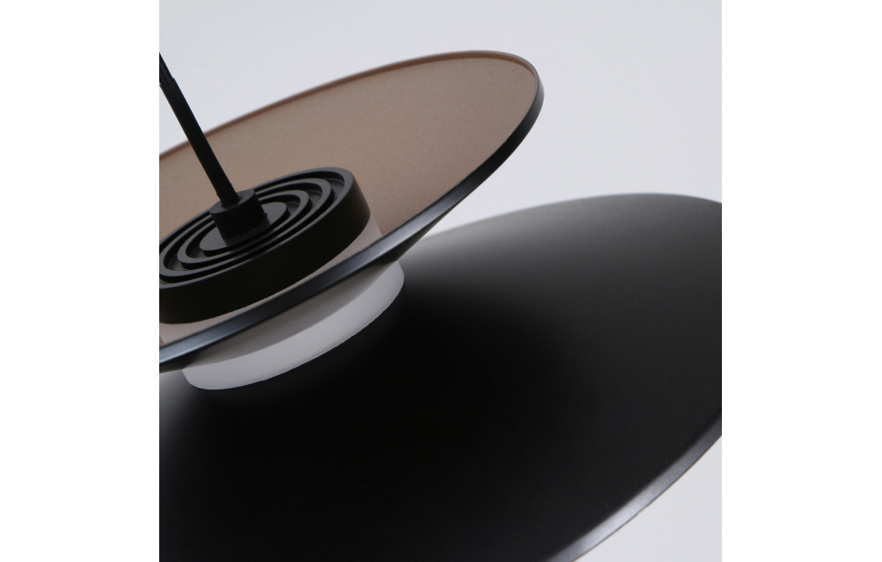 Потолочная люстра Platt напоминают по форме катушку благодаря соединению конусов, элегантно подсвеченных светодиодным модулем. Матовый черный цвет придает элегантность и стиль, создавая контраст с насыщенной песочно-золотой окраской, которая привносит тепло и уют. Внутренняя золотая поверхность плафонов отражает свет, делая помещение светлее и ярче, создавая комфортную атмосферу. Регулируемая высота.