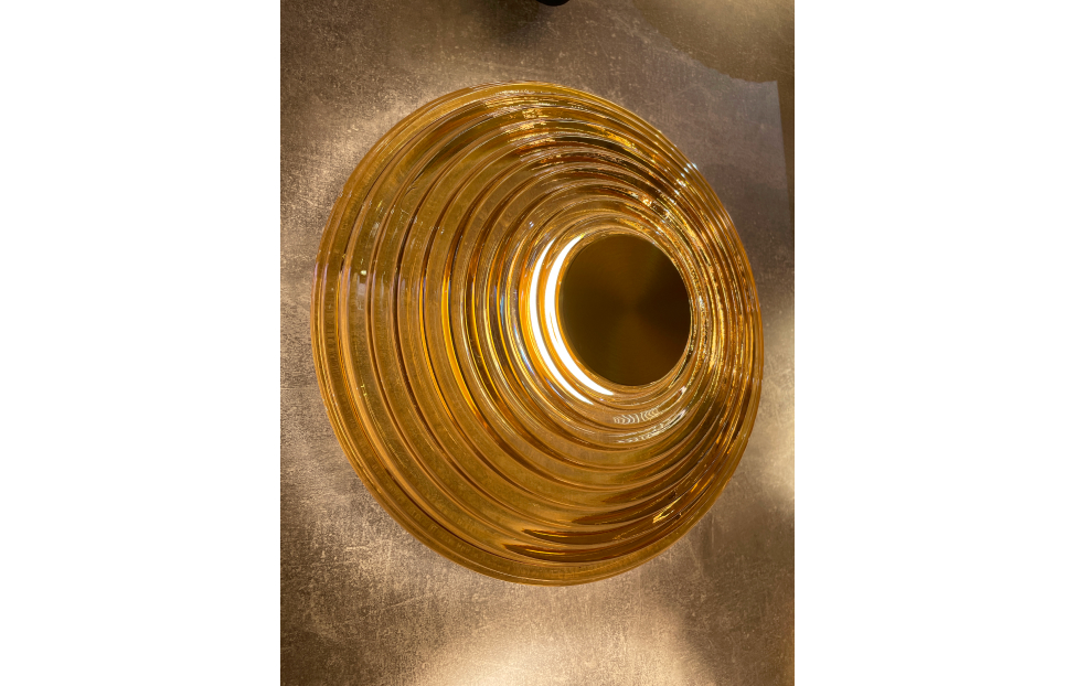Светильники Whirlpool представляют собой современные элементы освещения с каркасом цвета латуни. Свет от встроенных LED-модулей создает впечатляющий эффект: он расходится внутри плафона, создавая игры света и теней. Этот эффект добавляет атмосферности и загадочности в помещение, делая освещение коллекции Whirlpool функциональным и художественным. Металлический каркас в цвете латунь, плафоны из стекла янтарного цвета с объемной структурой колец, встроенный LED-модуль.
