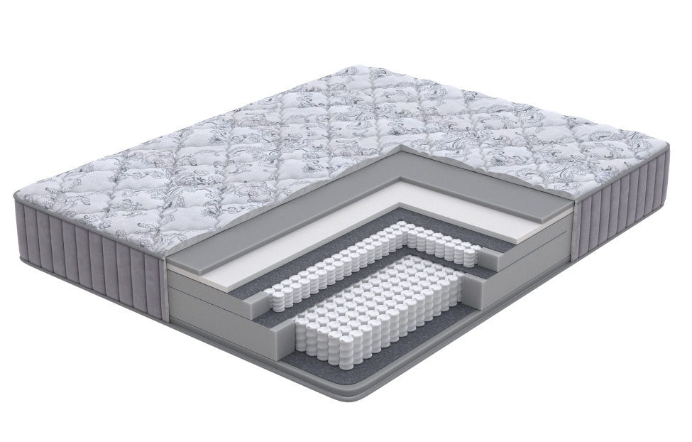 Высокий односторонний матрас премиум класса с низкой жесткостью, обеспечивает неповторимый уровень комфорта. Благодаря современным материалам с функцией памяти, матрас способен подстраиваться под индивидуальные особенности вашего тела. В основе матраса уникальная система из двух блоков независимых пружин с повышенным ортопедическим эффектом. Нижний пружинный блок состоит из 512 независимых пружин, он обладает ортопедическими свойствами и берет на себя большую часть нагрузки. Верхний блок состоит из 1000 пружин на спальное место, которые равномерно распределяют нагрузку и обеспечивают точечную поддержку тела.