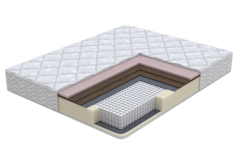 Би-кокос, Высокоэластичная пена Orto Foam, Неолатекс, Пружинный блок «EVS 1000», Термовойлок, Эко ППУ (2 см)