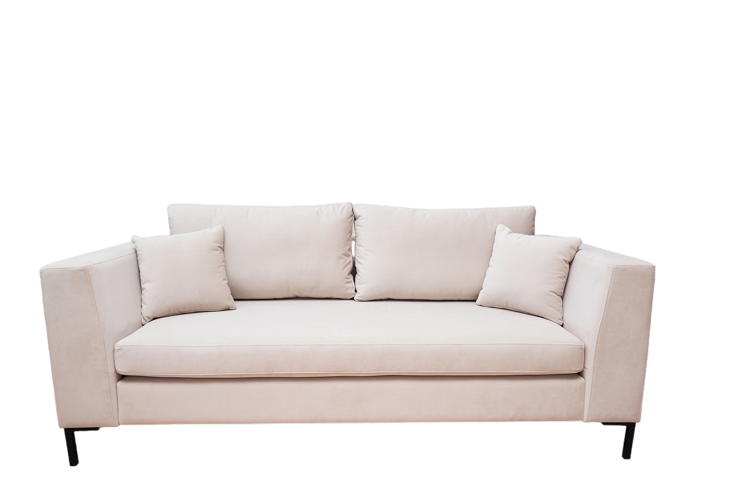 Модель «Челси» в универсальном молочном оттенке подойдет для обстановки в стиле сканди, лофт или минимализм. Бархатистая поверхность с гладким коротким ворсом приятна на ощупь и не боится сухой чистки. Микровелюр устойчив к истиранию, не тускнеет при эксплуатации, не вызывает аллергических реакций. Сочетание белой обивки и металлических ножек с покрытием под бронзу дают дивану элегантность. Изделие легко освежить яркими акцентными подушками или контрастным окружением.