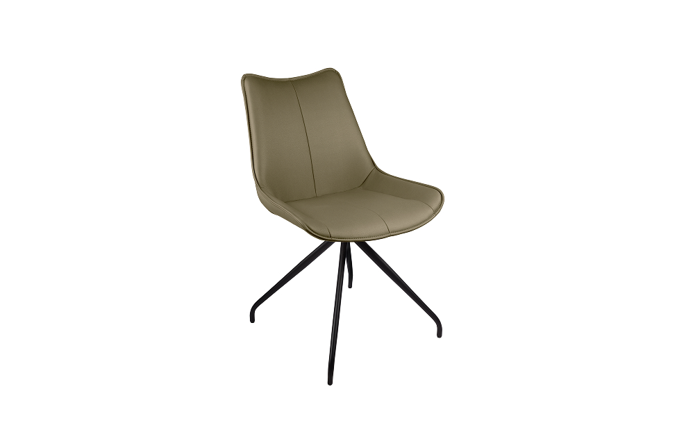 Стул Барса с поворотным механизмом прекрасно впишется в любой интерьер и комнату. Такой стул можно использовать как в качестве обеденного стула, так и в виде рабочего кресла к письменному столу. Обивка из искусственной кожи в актуальном серо-зеленом оттенке прекрасно гармонирует с металлическими ножками черного цвета. Такие стулья украсят современные интерьеры, а также пространства в стиле эклектики.