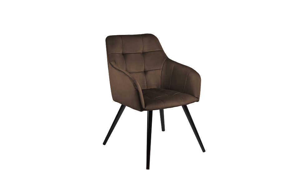 Стул-кресло Отэм с поворотным механизмом прекрасно впишется в любой интерьер и комнату. Такой стул можно использовать как в качестве обеденного стула, так и в виде рабочего кресла к письменному столу. Обивка из велюра в актуальном коричневом оттенке прекрасно гармонирует с металлическими ножками черного цвета. Такие стулья-кресла украсят современные интерьеры, а также пространства в стиле эклектики.