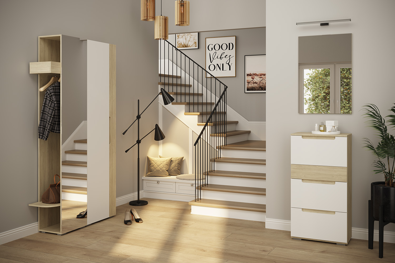 Прямой напольный шкаф-пенал благодаря компактным размерам подойдет для обустройства прихожей, малогабаритной гостиной и небольшой спальни. Сдержанный лаконичный дизайн, отсутствие лишних деталей, строгое цветовое решение делают изделие идеальным для интерьера в стиле сканди, эко, облегченный лофт. Профильная ручка отлично вписывается в общую композицию, подчеркивая минималистичность мебели.