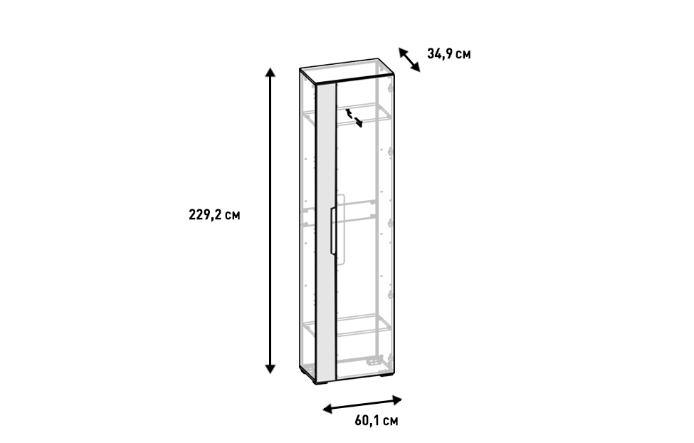 – описание: назначение для одежды, цвет швейцарский вяз, белый, стиль современный, минимализм, размер 229.2x60.1x34.9 см.