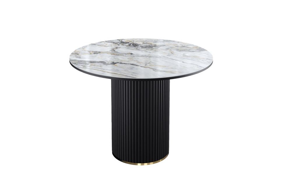 Глянцевая керамическая столешница очень привлекательна, благодаря современному дизайну и яркому оформлению. Удобное расположение коленей обеспечивает комфорт при использовании изделия. Размер обеденного стола идеально подходит для четырех персон.