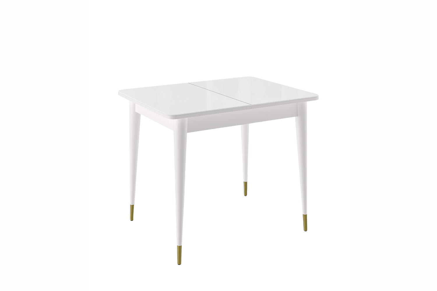 Стол обеденный Мане прямоугольный раздвижной К1100 опоры белого цвета с металлическими наконечниками, столешница - стекло белое сатин.