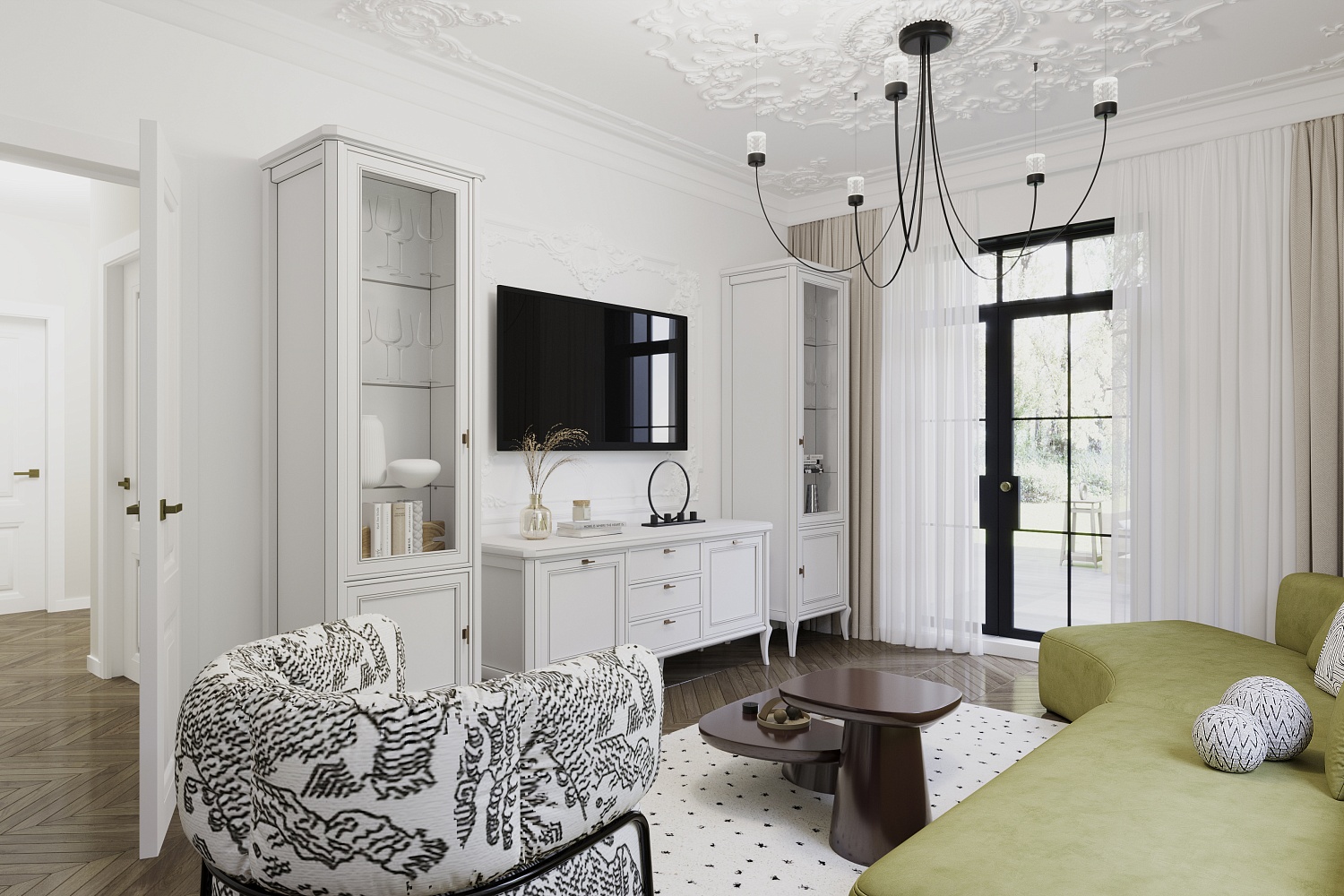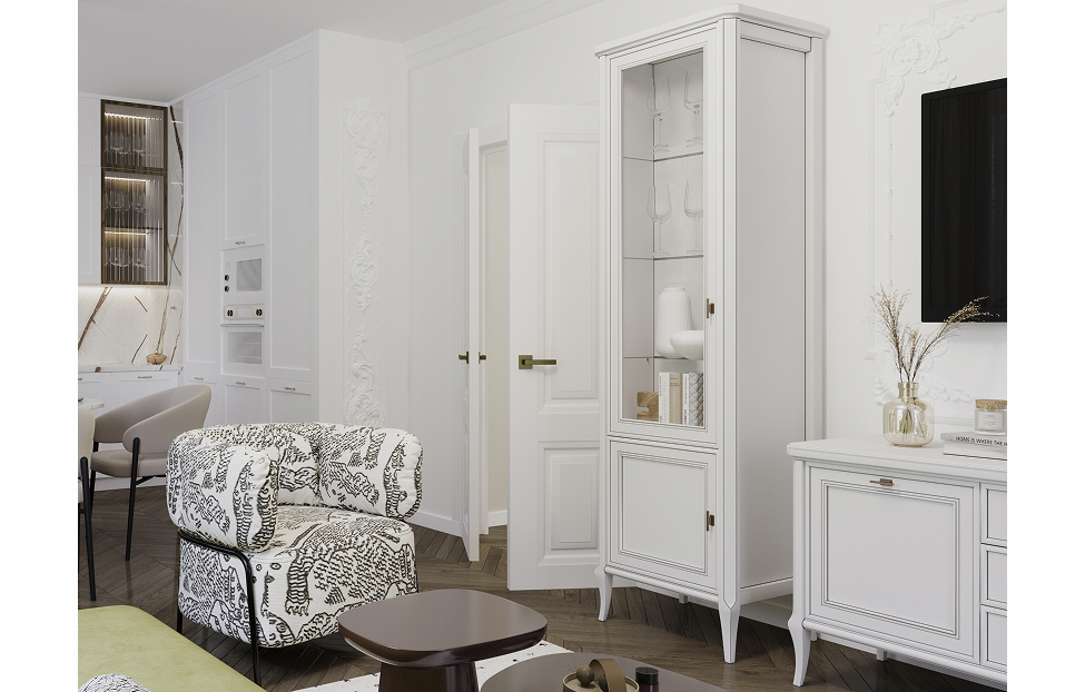 – описание: размер 214.8x287x50.5 см, цвет бело-серый, стиль неоклассика, назначение для гостиной.
