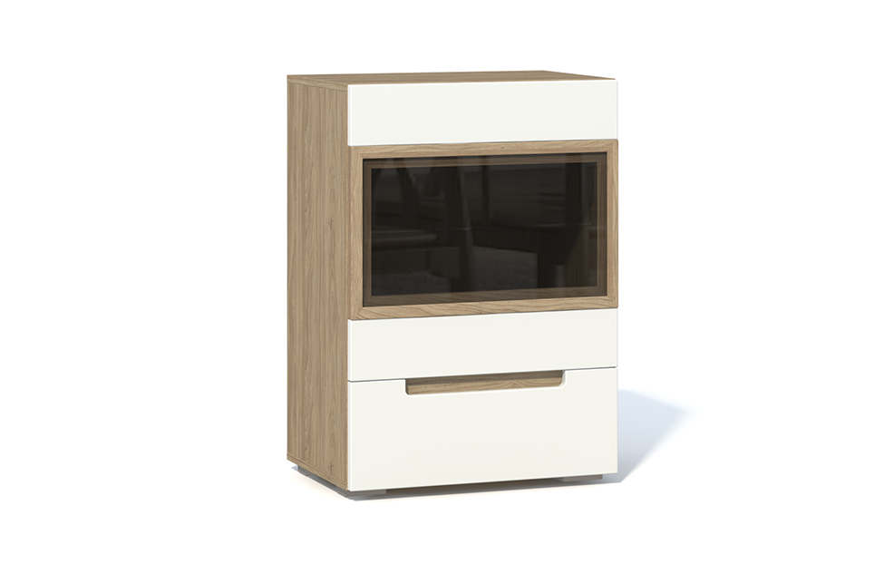- Комплектуются одной стеклянной полкой (в отделении за дверью со стеклянной вставкой) и выдвижным ящиком в нижнем отделении;