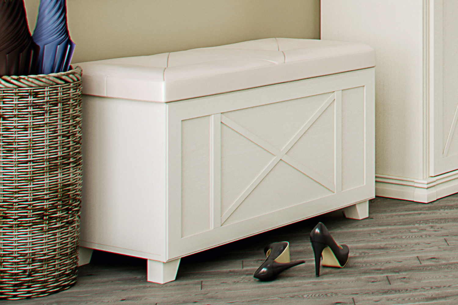Меблировка выполнена из ламинированной ДСП и МДФ-профиля. Откидная крышка имеет мягкую отделку сверху, а ее петли оснащены демпфером для плавного и бесшумного закрывания. Все кромки облицованы высококачественным материалом. Изделие подойдет для украшения прихожей, спальни, гостиной, будет гармонично выглядеть с другими элементами из коллекции «Кантри». Для покупки банкетки воспользуйтесь соответствующим разделом интернет-магазина.