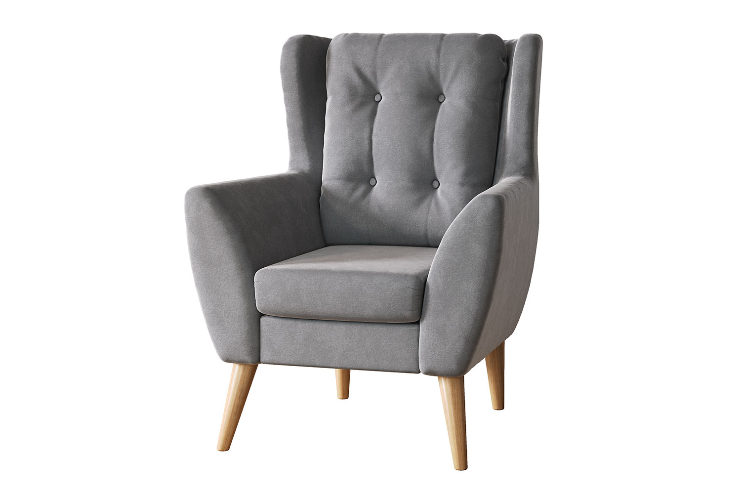 Модель «Ладога» предназначена для оформления гостиной или спальни в стиле классика, лофт или сканди. Изделие имеет наклонную спинку, зауженные кверху подлокотники нестандартной формы. Бархатистость велюровой отделки подчеркнута каретной стяжкой. Холодный оттенок, древесная текстура ножек дополняют серо-голубой цвет обивки.