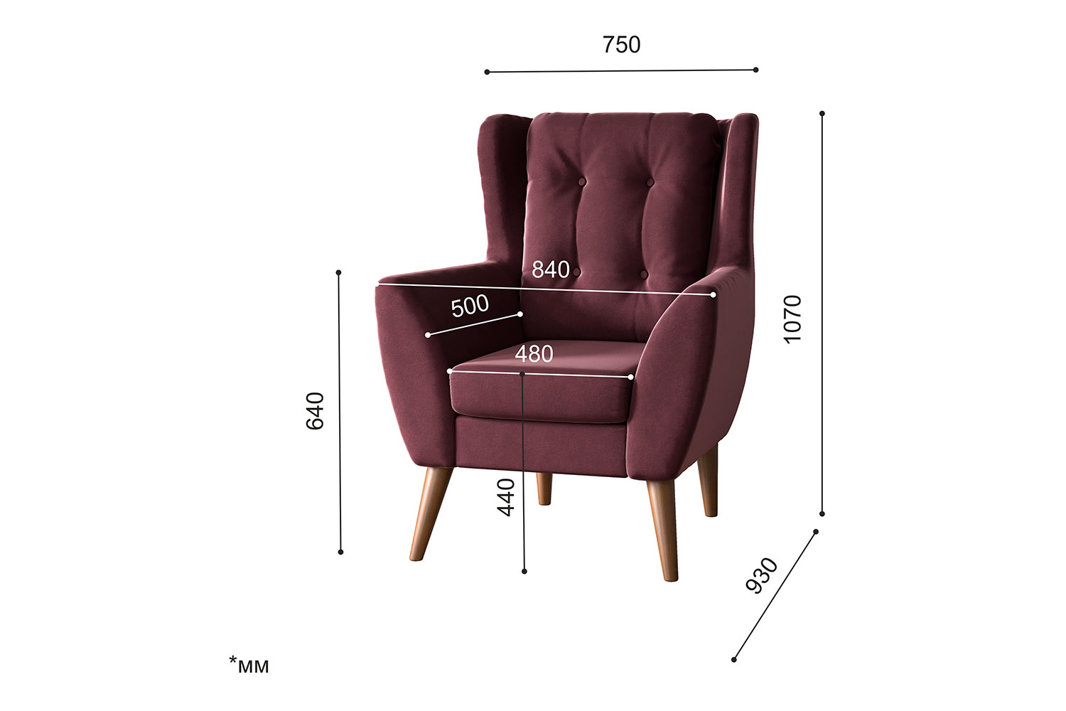 – описание: стиль скандинавский, лофт, современный, цвет марсала (velutto 15), материал обивки велюр, размер 107x84x93 см.