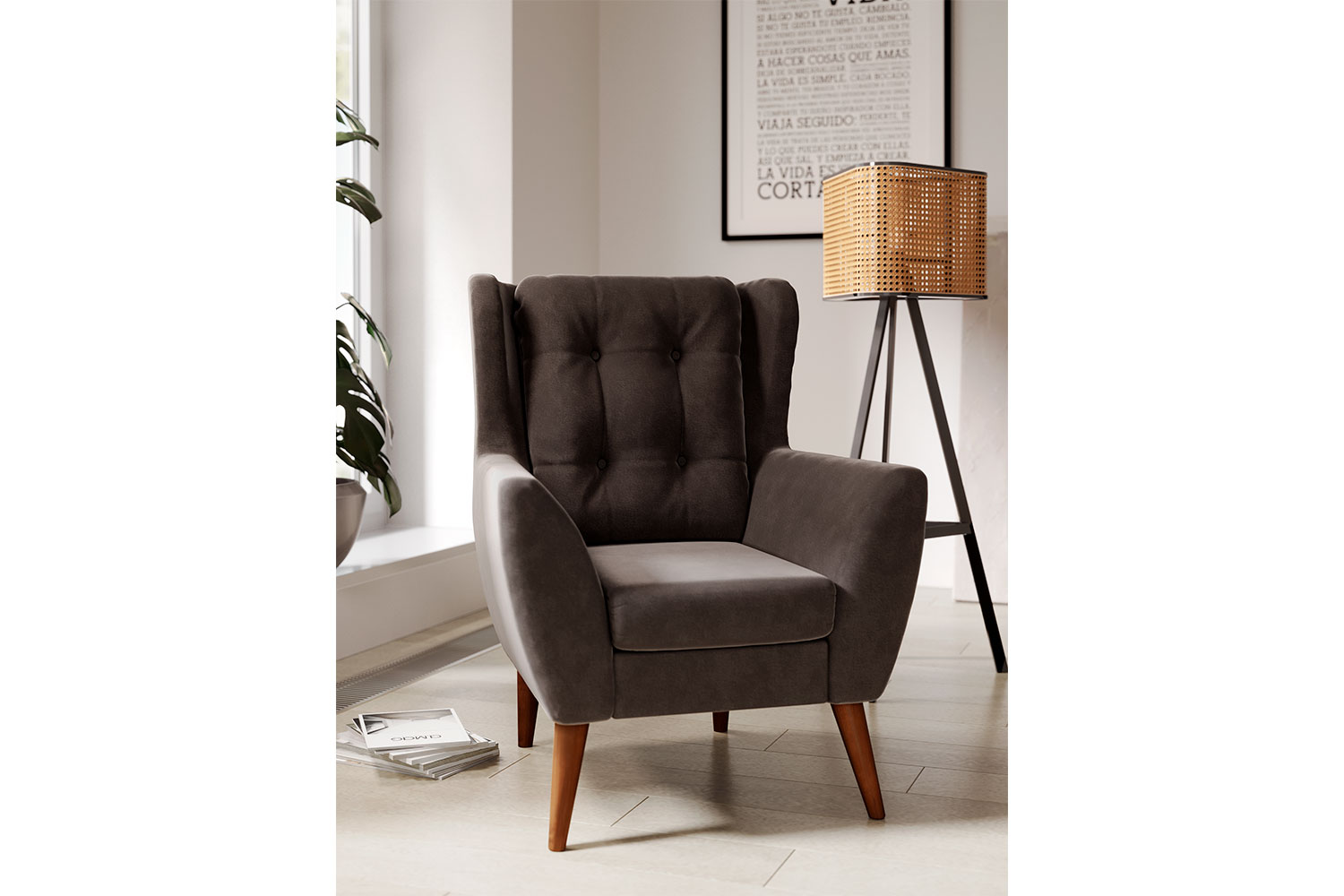 – описание: стиль скандинавский, лофт, современный, размер 107x84x93 см, цвет коричневый (velutto 19), материал обивки велюр.