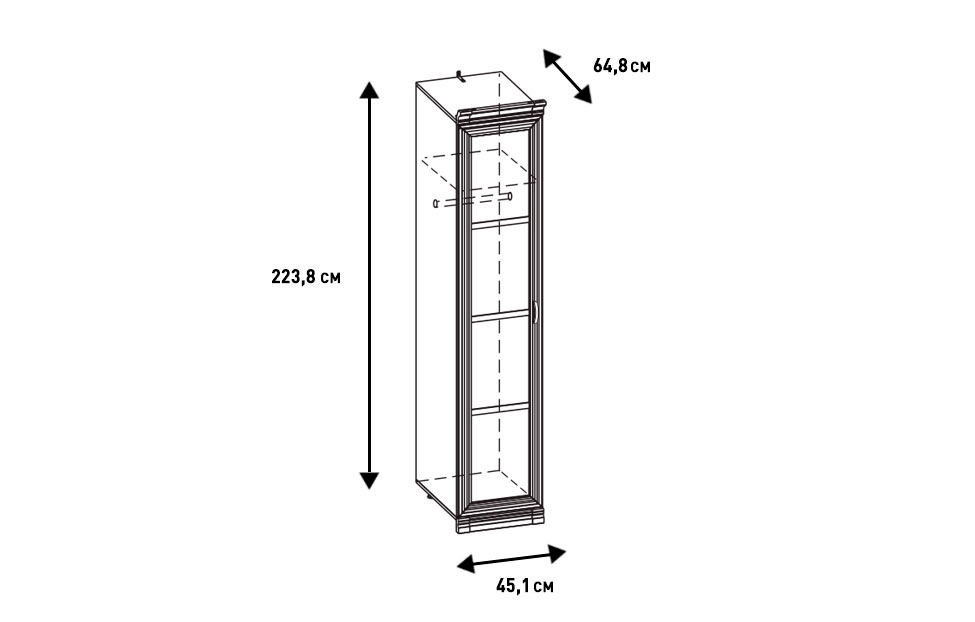 - Высота модуля — 223,8 см с учетом высоты лицевого карниза высотой 6,2 см;